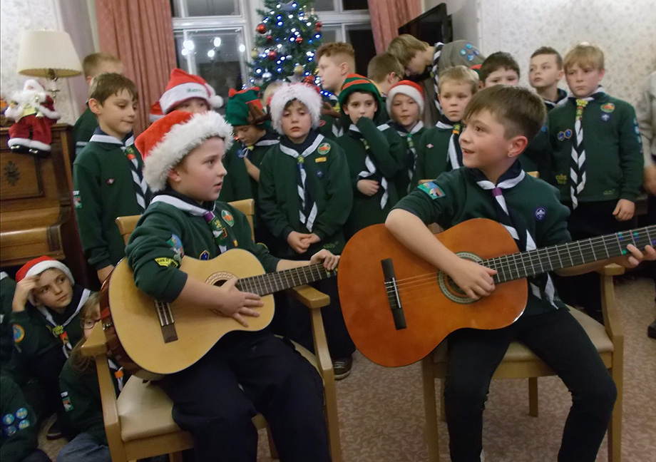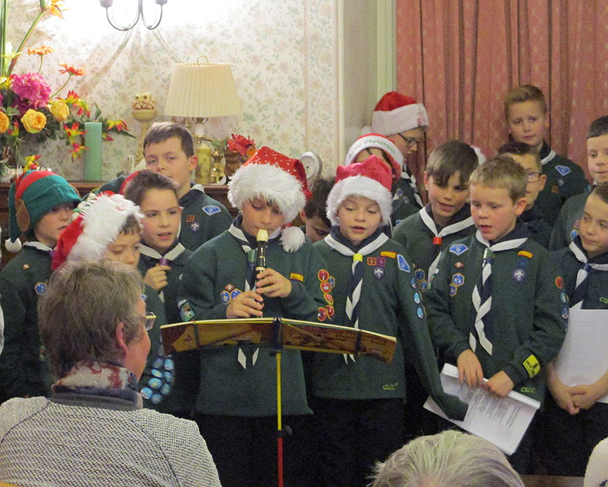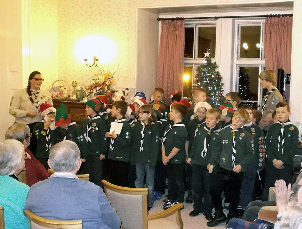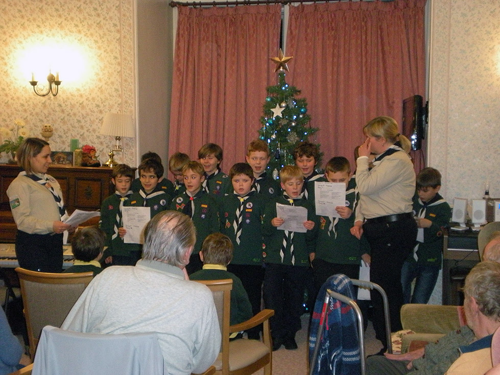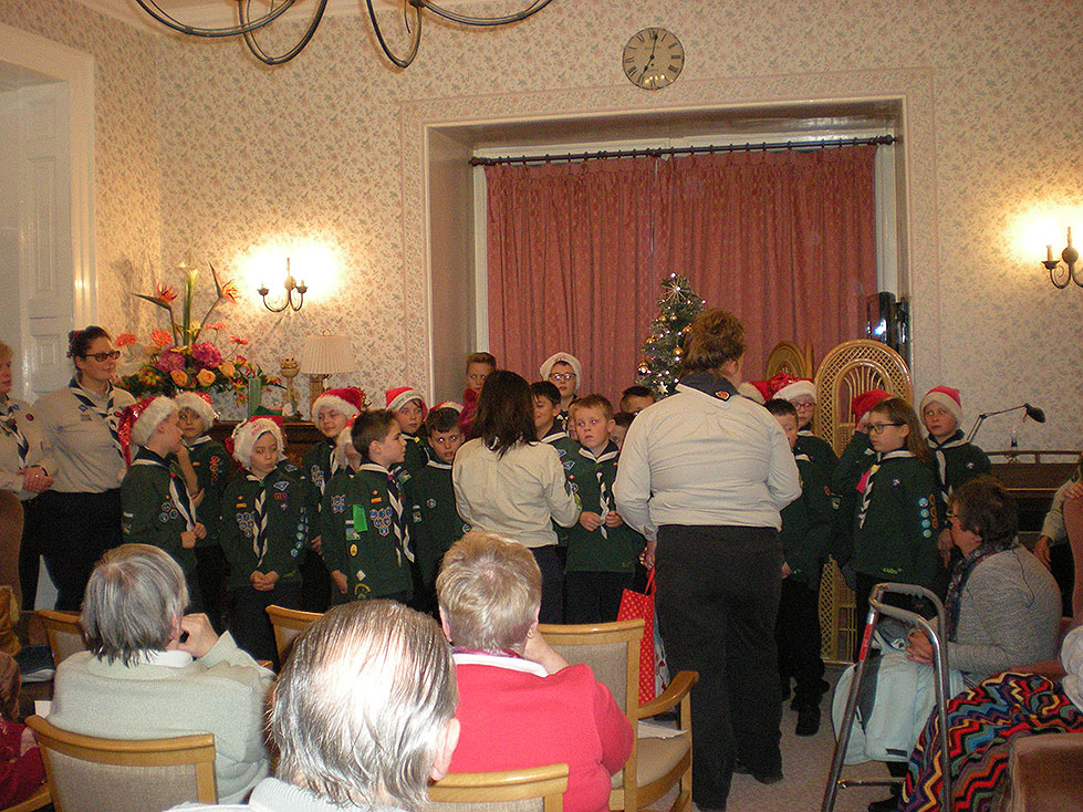 Our programme started with a visit from the local Cub pack on Monday 12th December at 7pm. The Children sang Carols and read poems and then spent some time mingling with our residents.
