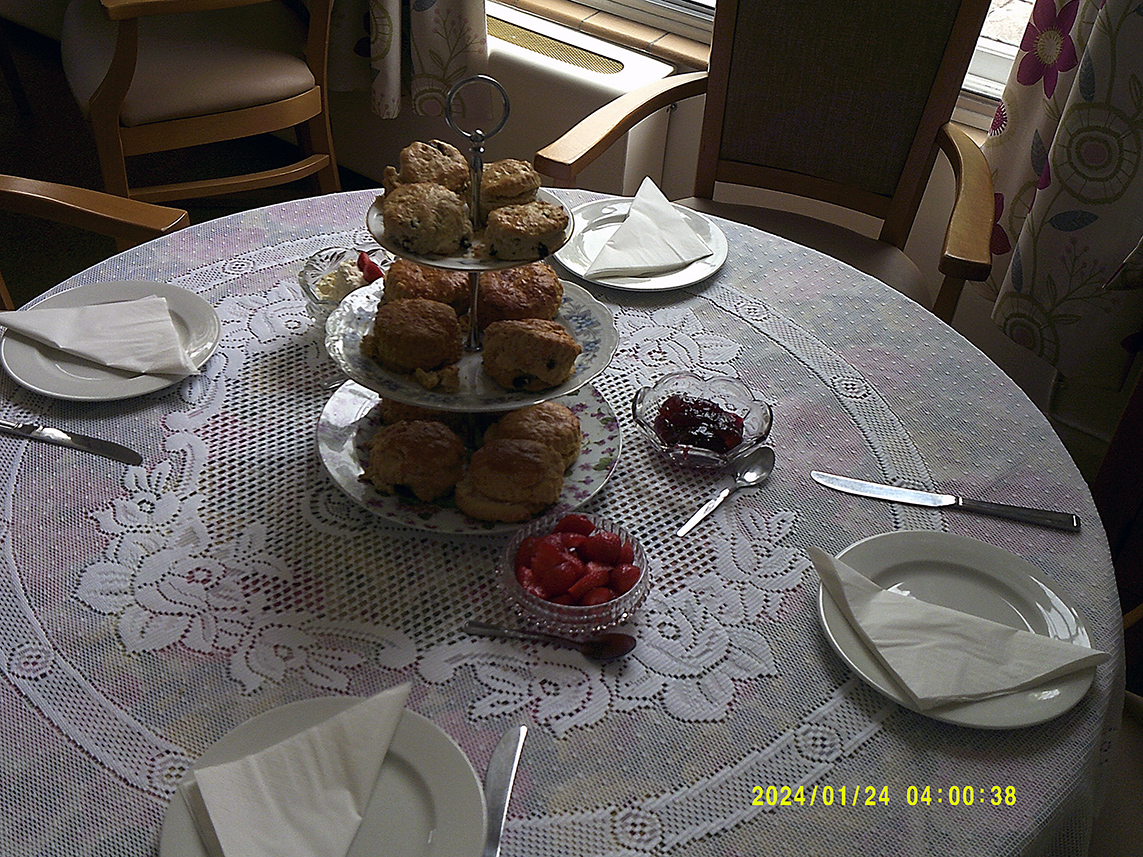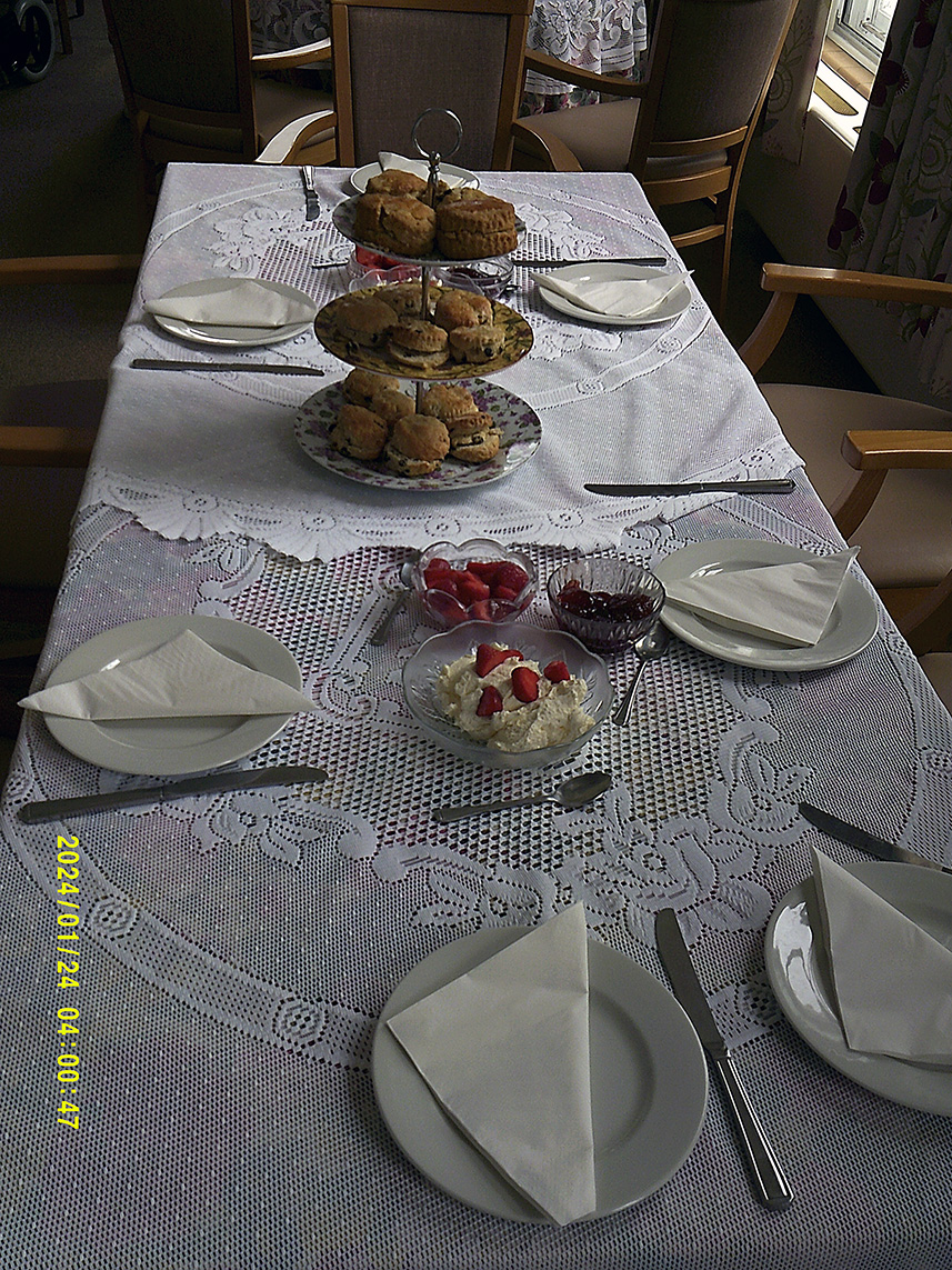 We held out first Cream Tea of the year on Wednesday 15th May but had to have it in our dining room due to the wet weather.