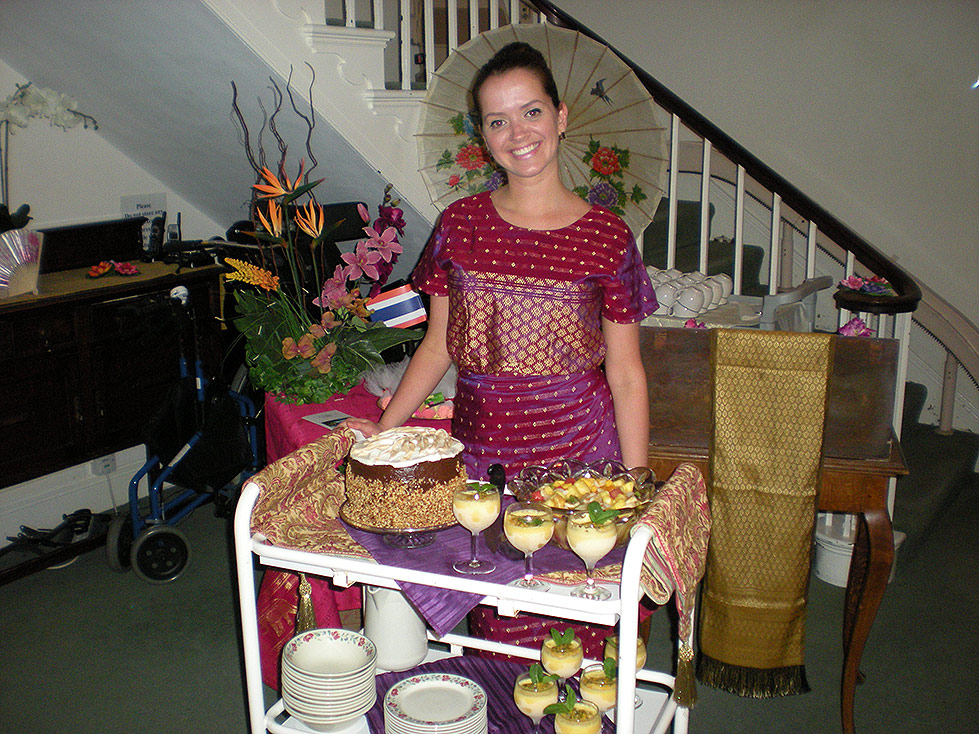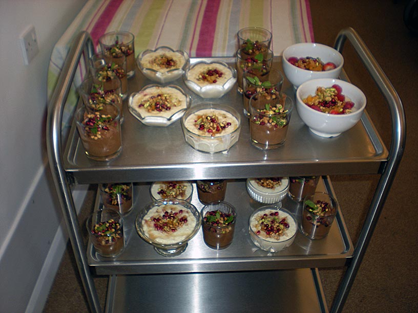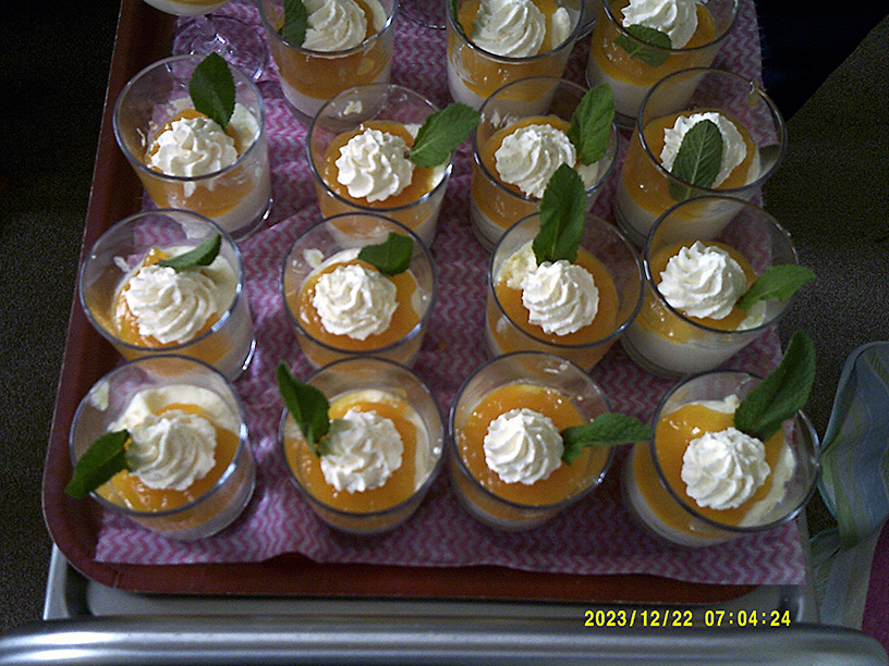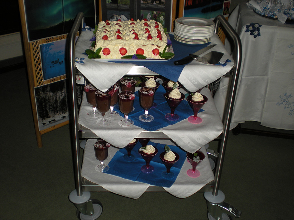Twenty six guests enjoyed snacks in our lounge with a non alcoholic cocktail local to Brazil, and then into our dining room for their main meal and desserts. You can see from the menu all the different foods that were on offer. We are very thankful to our cook, Johanne Fletcher and the waitresses pictures for making the evening a great success.