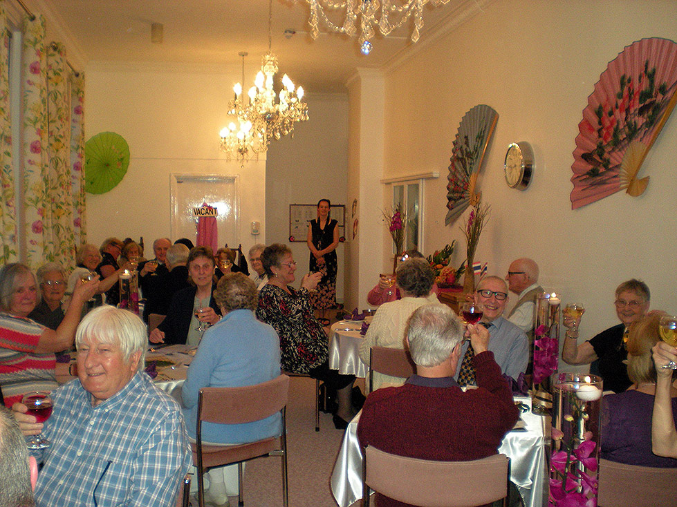 Guests were also entertained with authentic accordion music throughout the evening by Kenny Austin. Canapés and drinks were served in the lounge and each of the guests were welcomed, table by table, into the dining room for the three course dinner. The menu was arranged by retired chef John Kelly and helped by Karen Smith. Our thanks to Lynne, Carol, David and Mark also for their help on the evening.