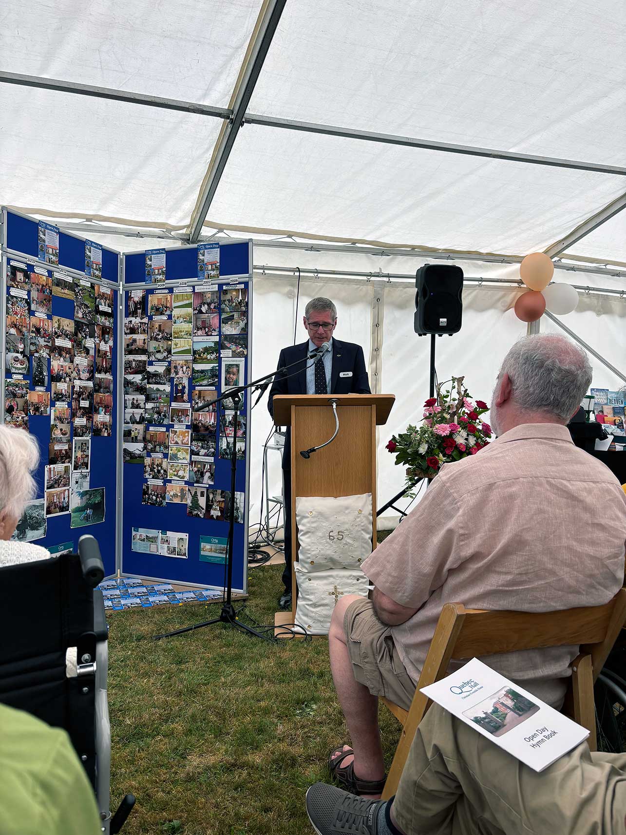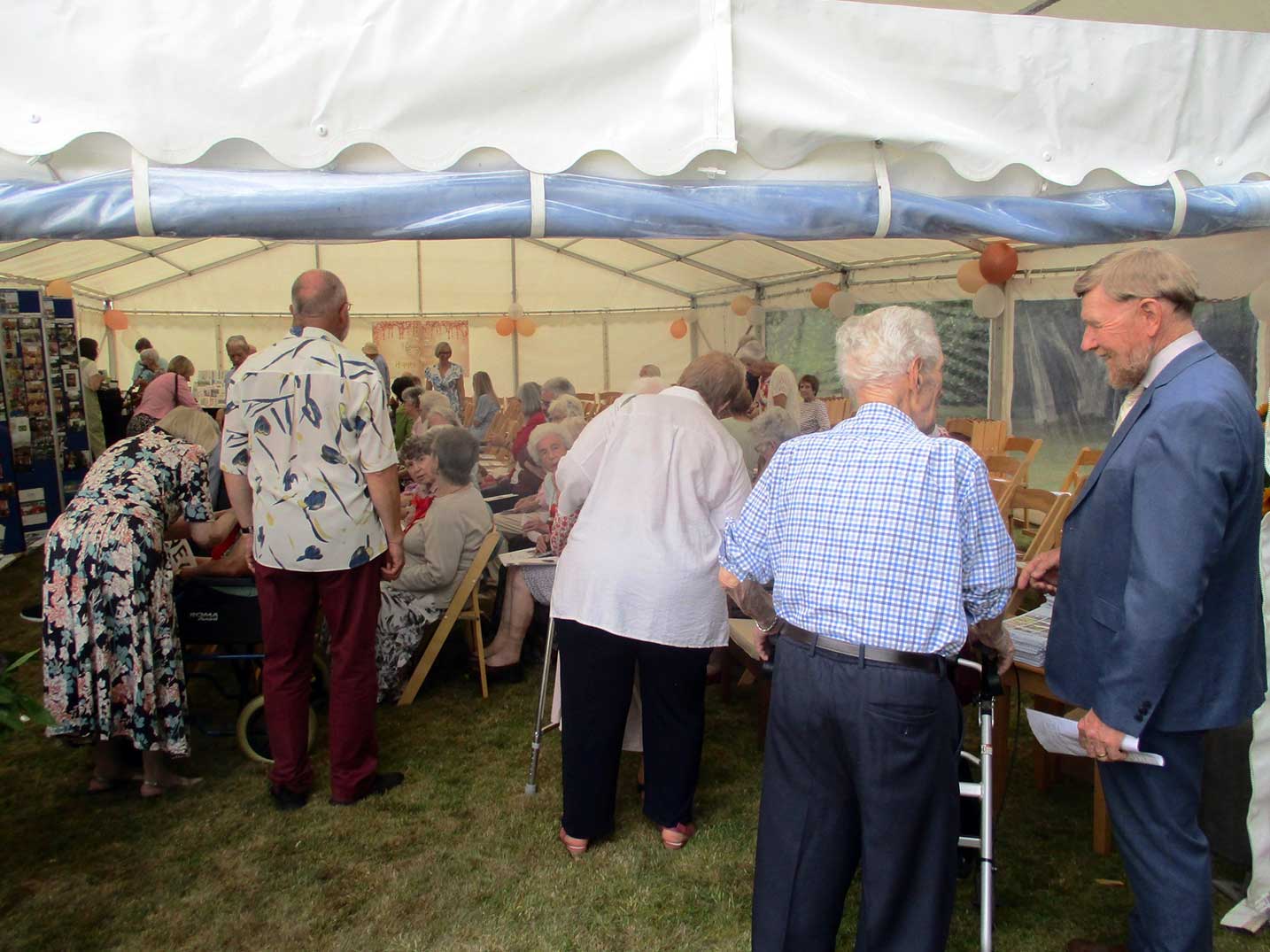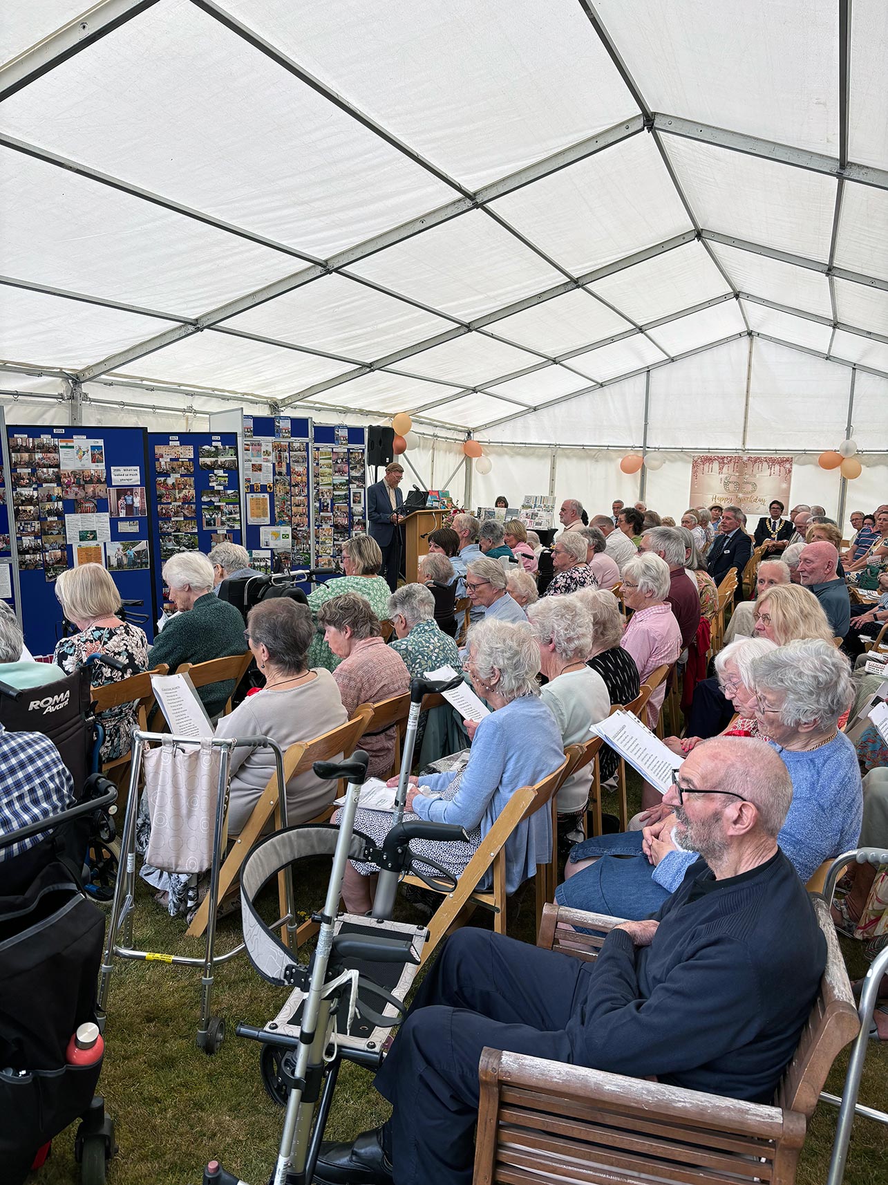 On Saturday, residents of hall and bungalows, family members, staff, trustees and volunteers who have been associated with the successful operation of the complex in myriad ways over the years, gathered in two marquees erected in the estate’s mature grounds for the occasion.
