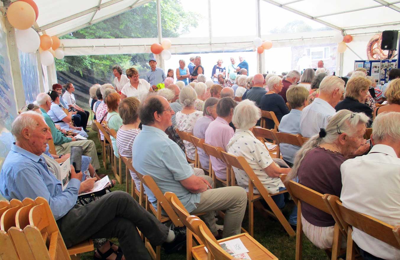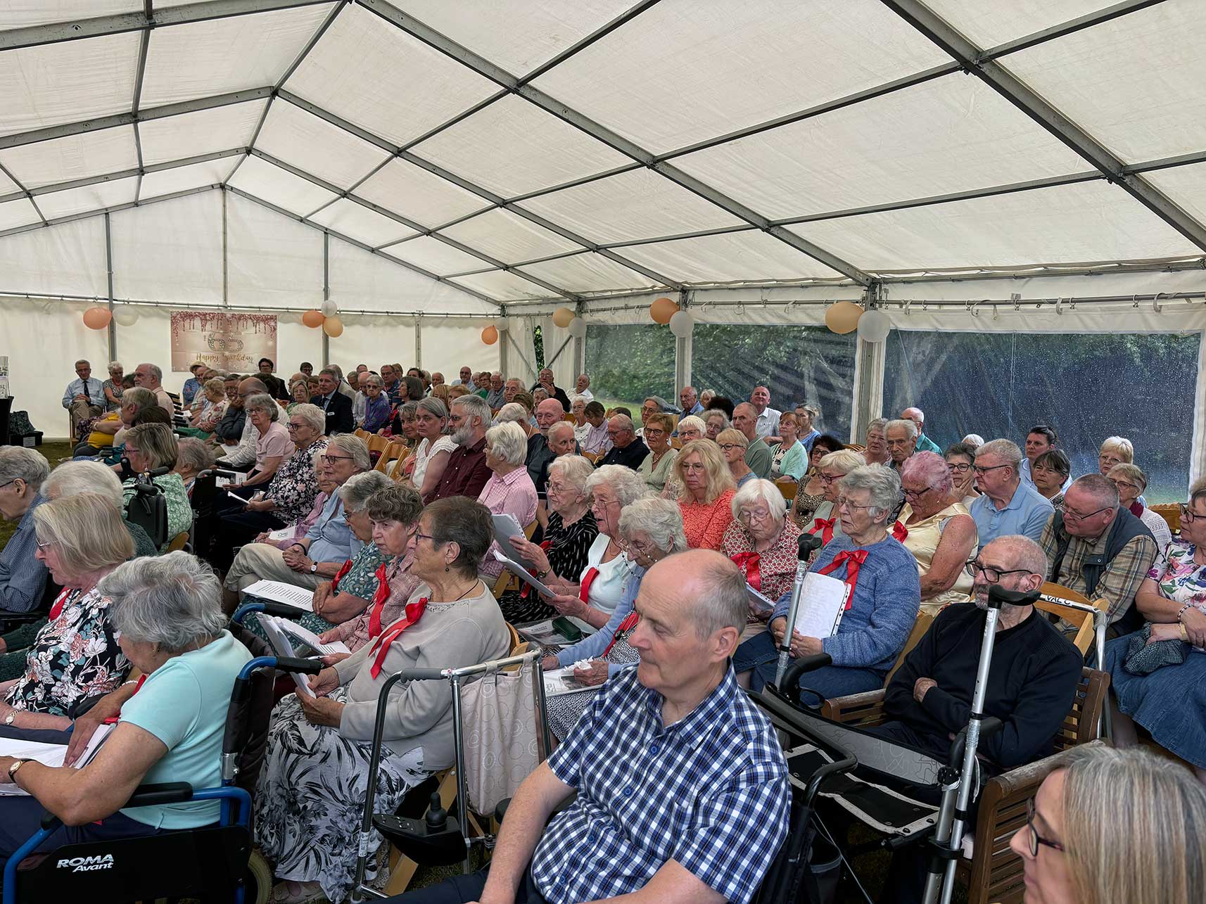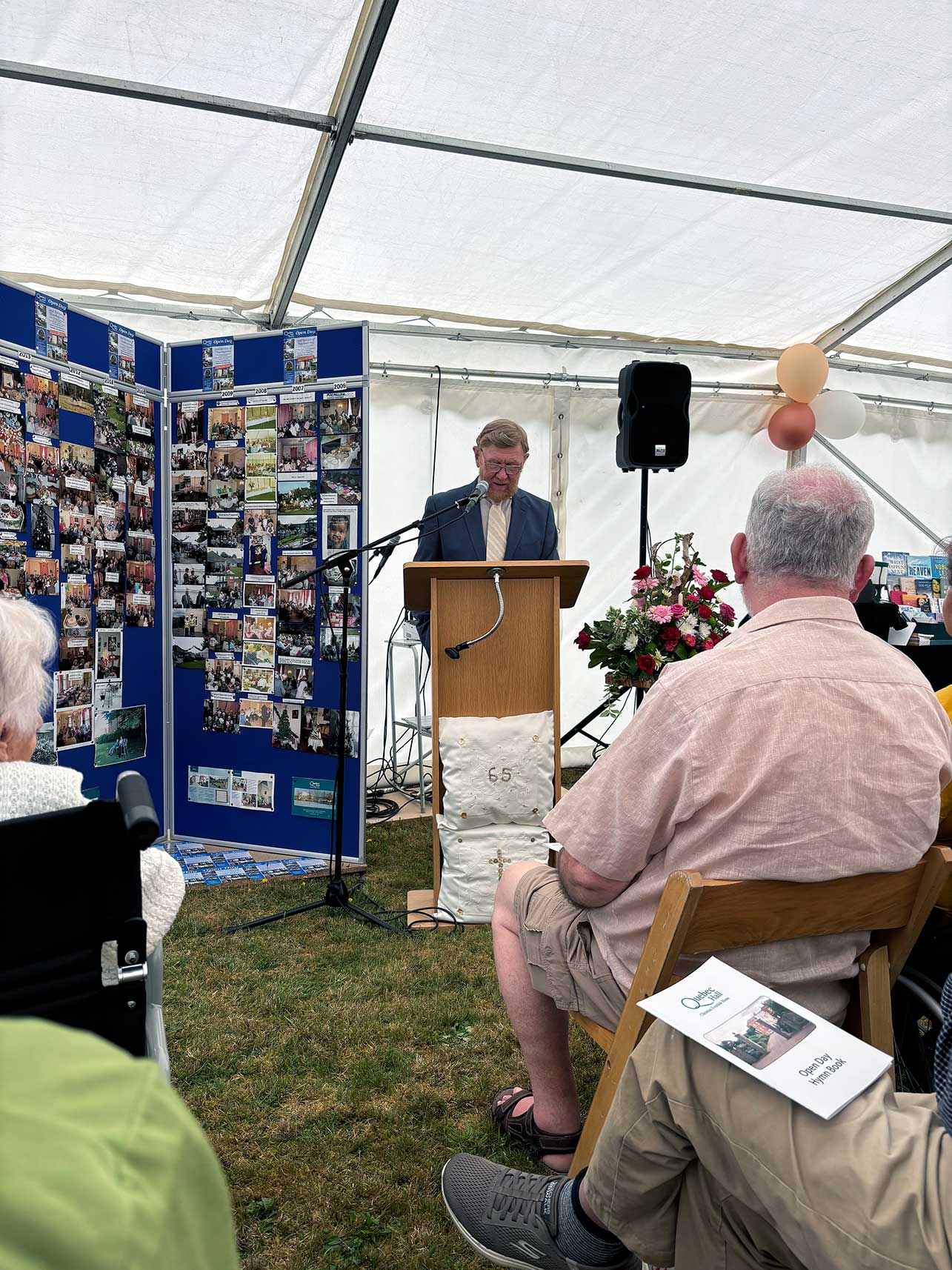 On Saturday, residents of hall and bungalows, family members, staff, trustees and volunteers who have been associated with the successful operation of the complex in myriad ways over the years, gathered in two marquees erected in the estate’s mature grounds for the occasion.
