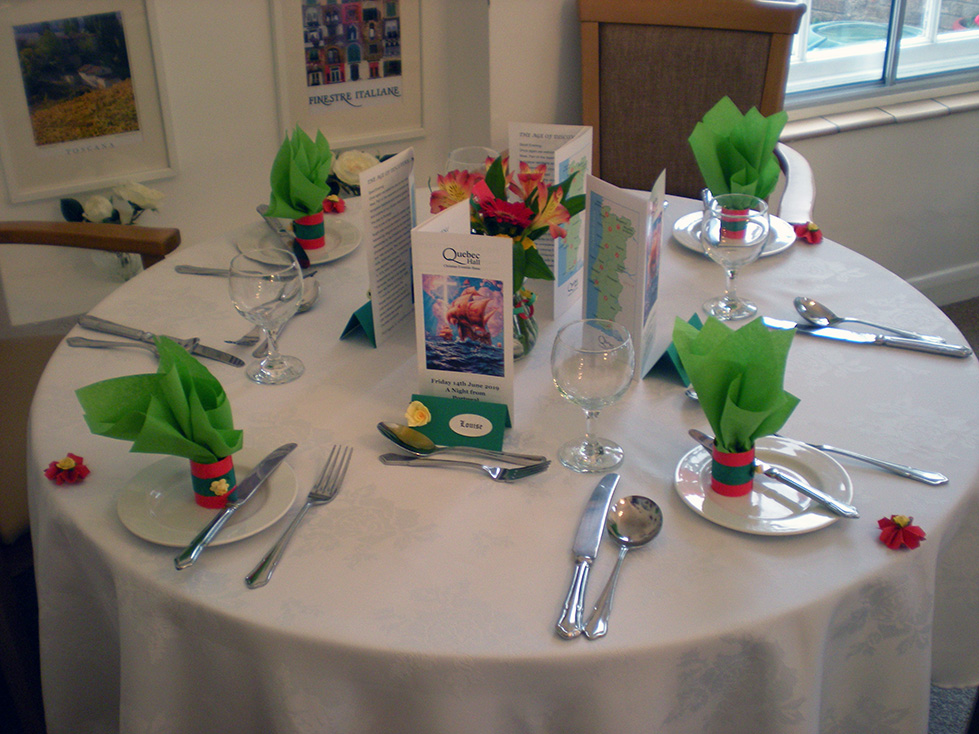 Quebec Hall hosted the second of our Themed Evenings on Friday 4th May. This time we decided to go to Brazil! As you can see from the photos a lot of time and effort was put into the preparation for the evening. One of our staff, Aline Santos, comes from Brazil, along with her sister and mother, we were able to ensure that the meal was very authentic.