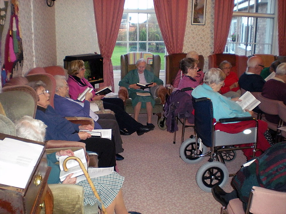 Our residents and some of our bungalow residents join in for a sing song every other Monday afternoon with Maureen Hale, one of our bungalow folk. As you can see our staff join in too!